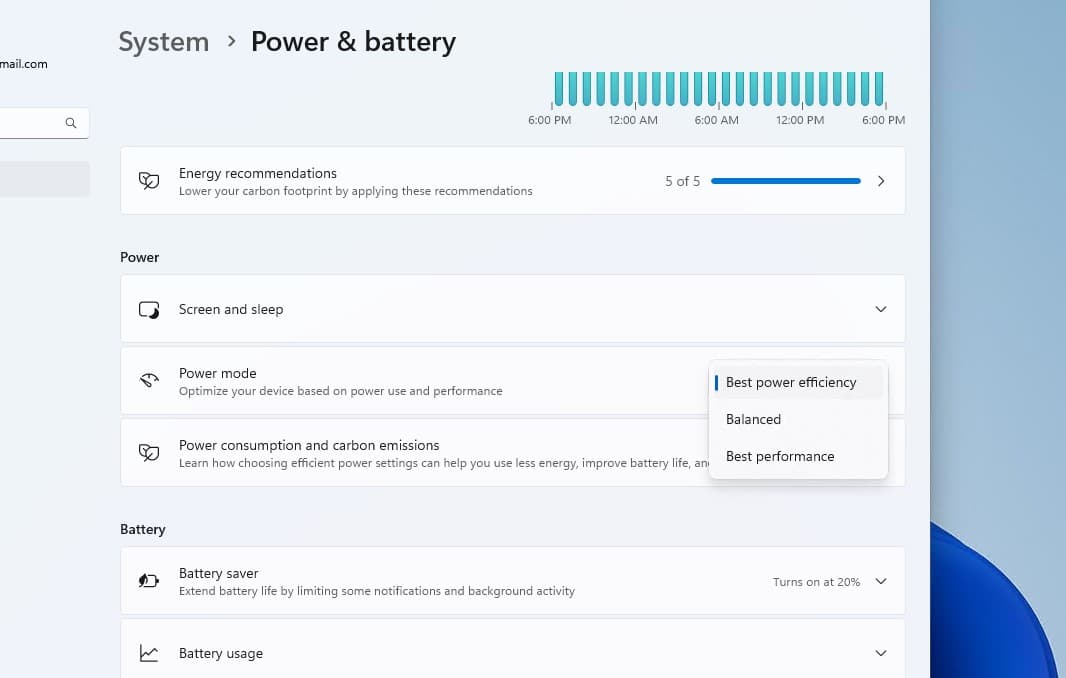 Doporučujeme vybratNejlepší energetická účinnostrežim, který pomáhá spotřebovávat méně energie a prodlužovat výdrž baterie vašeho Windows 11.