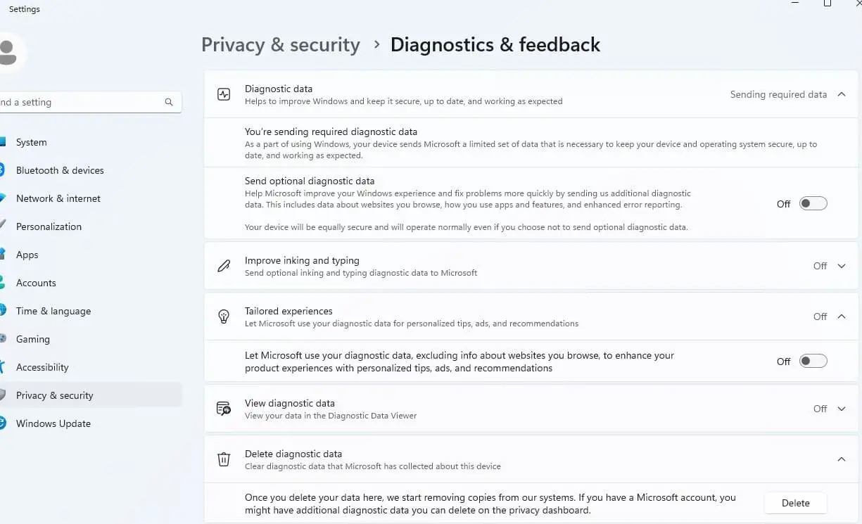 Diagnostická data společnosti Microsoft shromažďují podrobnosti o vašem zařízení, jeho nastavení a možnostech a jeho aktuálním výkonu za účelem řešení problémů a vylepšení uživatelského zážitku. Společnost však také analyzuje vaše diagnostická data a podá vám reklamy přizpůsobené tomuto osobnímu profilu. A zabránit tomu, aby to Windows 11 dělalZakažte společnosti Microsoft používat vaše diagnostická datapodle níže uvedených kroků.