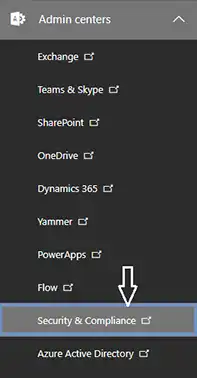 - Poté si vyberteZabezpečení a dodržování předpisůmožnost podCentra správy Exchange.