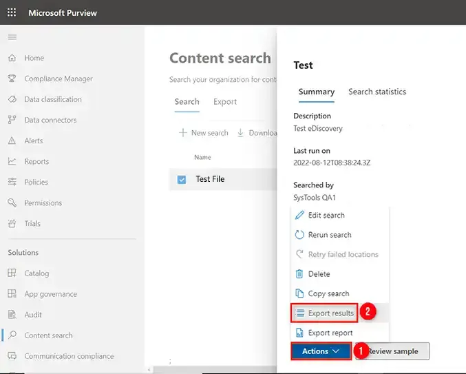 Použití této metody je snazší, ale kvůli nesprávné konfiguraci můžete čelit chybám, jako je eDiscovery Export Tool zaseknutý při výpočtu, nemůžete aplikaci spustit nebo nemůžete spustit nástroj eDiscovery z centra pro správu. V takovém případě zvolte další metodu stahování e-mailů do PST.