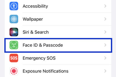 - 1Přejít naNastavení>Face ID a heslo(neboTouch ID & Passcode, v závislosti na modelu vašeho iPhone).