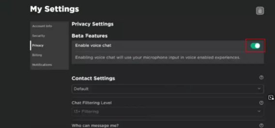 Jakmile uživatel dokončí proces ověření věku, je čas přejít na proces aktivace hlasového chatu. Dokončete proces podle níže uvedeného kroku.