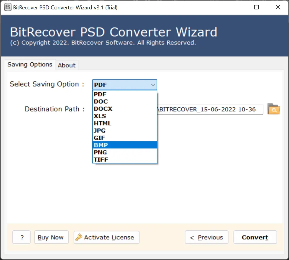 - Poté vyberteBMPjako možnost uložení z rozevíracího seznamu pro převod PSD na bitmapu.