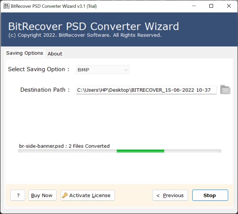 - Poté stiskněte tlačítkoKonvertovattlačítko pro převod souborů PSD do formátu BMP.