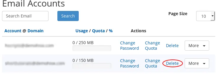 - HitTlačítko Odstranitk odstranění e-mailů Webmail.