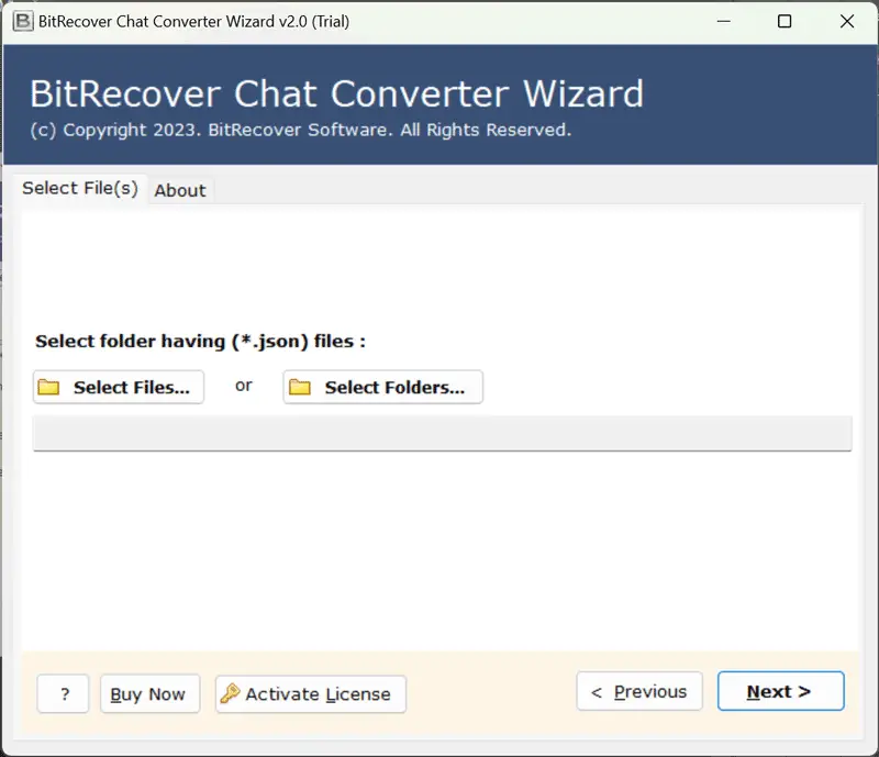 - Spusťte Google Chat to PDF Converter a vyberte siVyberte Soubory nebo Vybrat složkypro přidávání souborů Chat JSON do softwarového GUI.