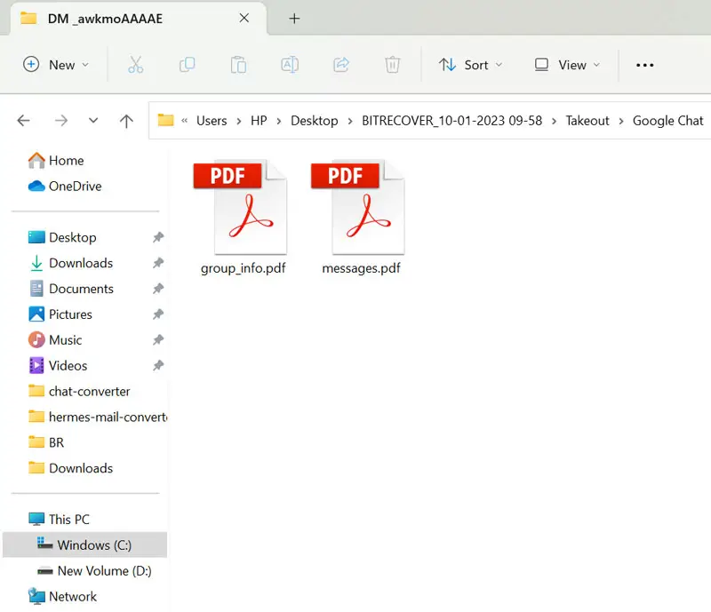 - Konečně tootevře cílovou cestu, získejte převedené konverzace do formátu PDF.