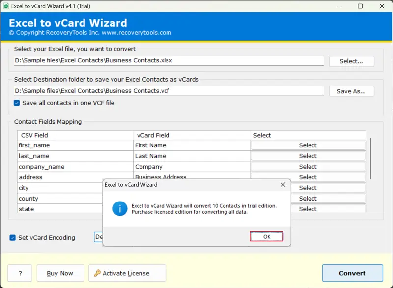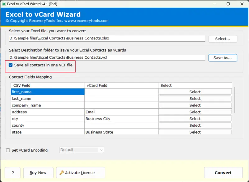 - Tento nástroj umožňuje uživatelům převádět data kontaktů z Excelu do standardního formátu a spravovat všechny seznamy v jediném souboru VCF.
