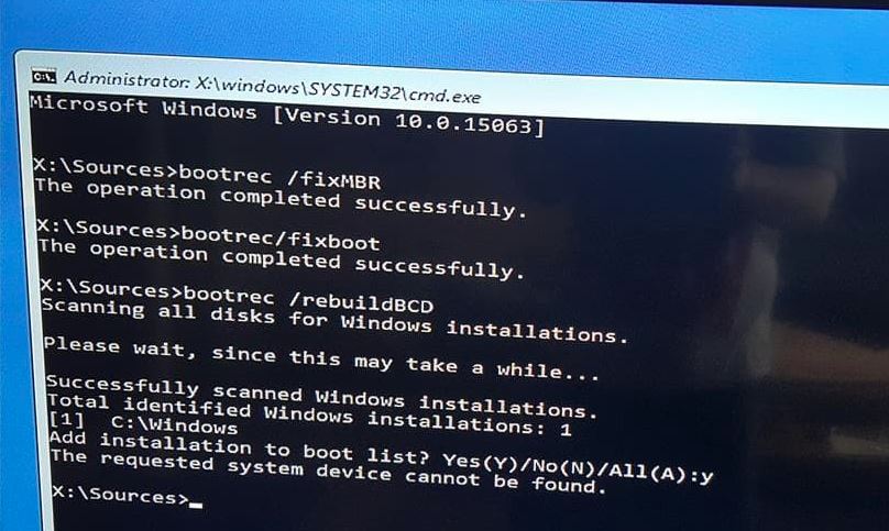 Zde je další funkční řešení označené jako opravit problém Špatné informace o konfiguraci systému ve Windows 10. Znovu otevřete příkazový řádek z pokročilých možností a poté jeden po druhém proveďte příkaz zkopírovat a vložit níže.