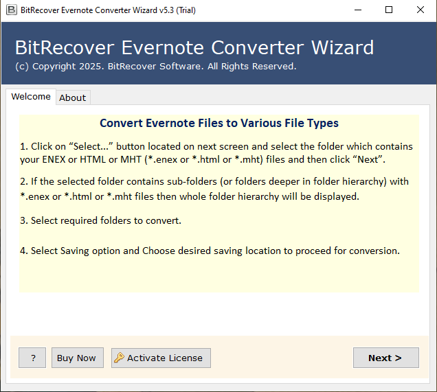 Možná budete muset provést migraci Evernote na OneNote z několika důvodů.Evernote Converternabízené a vyvinuté odborníky naBitRecover. Toto řešení je řešení na jednom místě, pokud chcete převést Evernote na aplikace pro psaní poznámek OneNote. Nabízí vám velké množství pokročilých možností a funkcí.