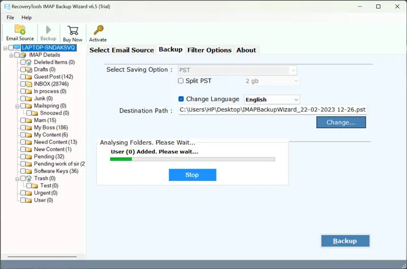 - Migrace Processzačíná v tomto okamžiku, kdy software automaticky importuje vaše e-mailové složky a prezentuje je na přehledném panelu pro snadné prohlížení.