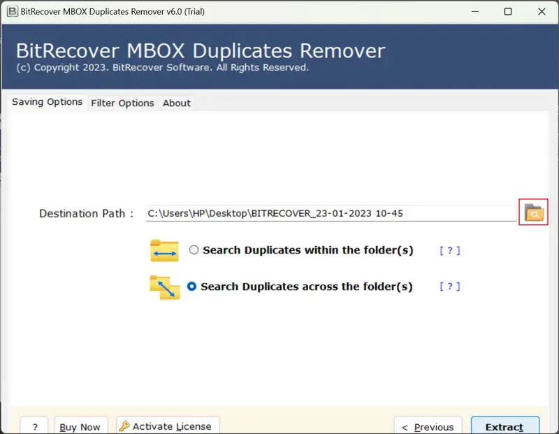 - Poté klikněte naSložkaikonu pro procházení konkrétní cílové složky. Software však automaticky nastavíDesktopjako výchozí cílovou cestu.