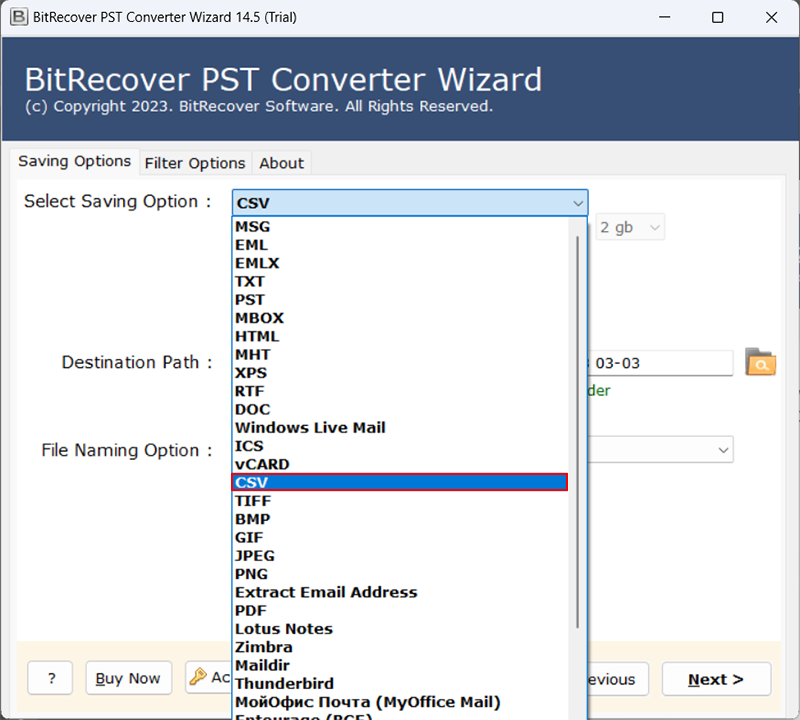 Data Outlooku jsou vždy považována za klíčová pro organizační a osobní účely, protože obsahují komunikaci klienta, spolupracovníka o projektech a mnoho dalšího. Takže doporučujeme vybratBitRecover PST File Converterprotože vám umožňuje ukládat data aplikace Outlook ve více než 39 formátech, abyste k nim měli snadný přístup bez závislosti na konkrétních platformách.