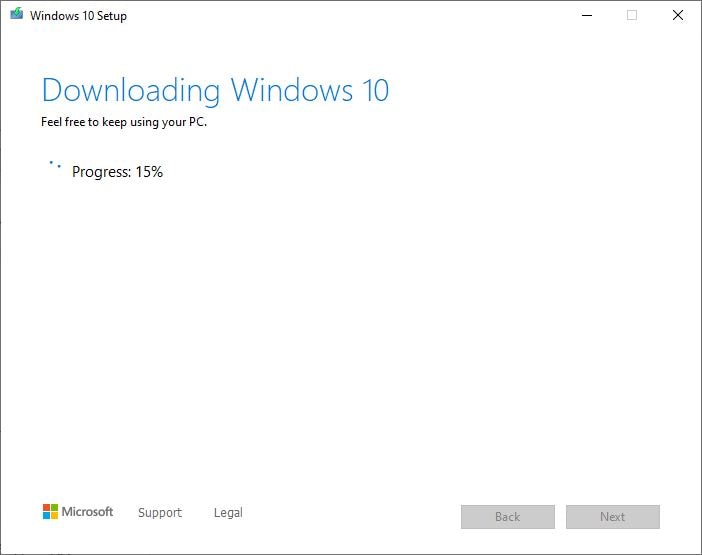 - Průvodce nastavením systému Windows 10 začne stahovat soubory aktualizací systému Windows 10 ze serveru Microsoft, počkejte na dokončení stahování.