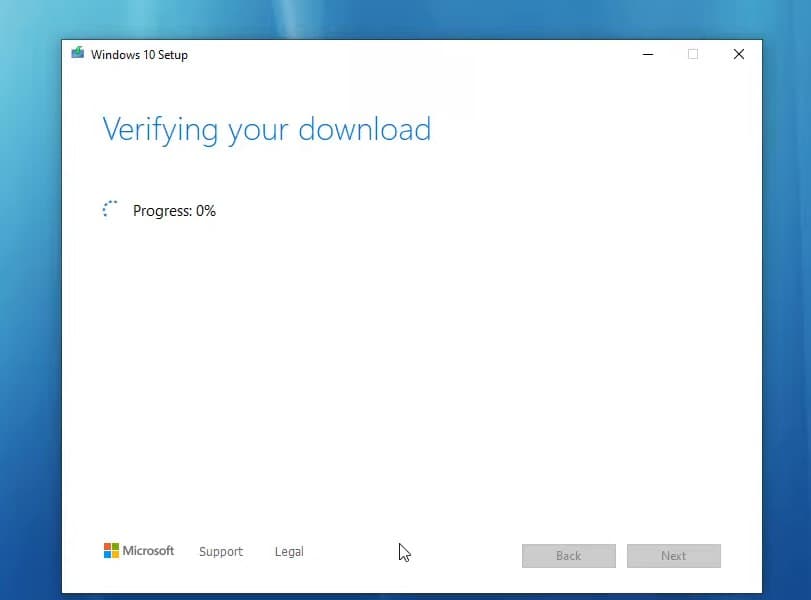 - Po dokončení se začne vytvářet média Windows 10. Počkejte na dokončení tohoto kroku. Nastavení bude procházet řadou kroků.