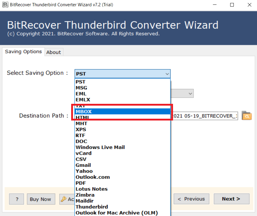 - Poté,export e-mailů Thunderbird do MBOXformátovat pomocí softwaru.