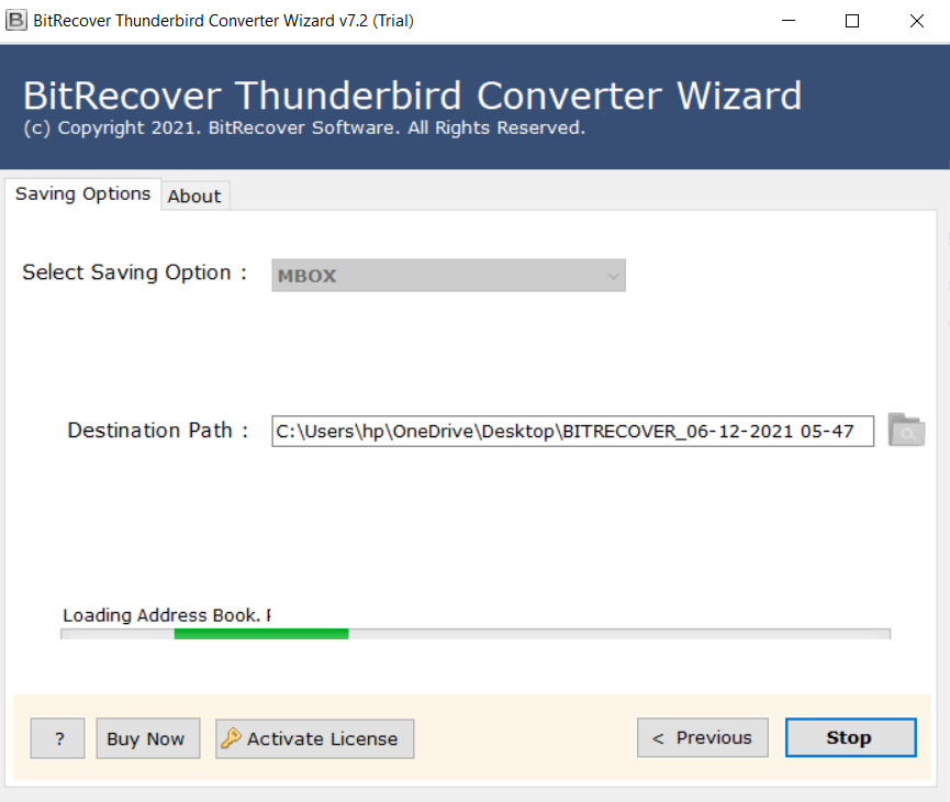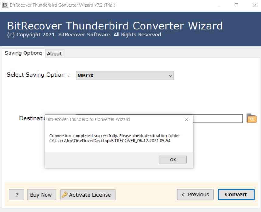 - Konečně vaševýsledná data budou uloženana cílové cestě ve vybraném (MBOX) formátu pro migraci Thunderbirdu na Mac Mail.
