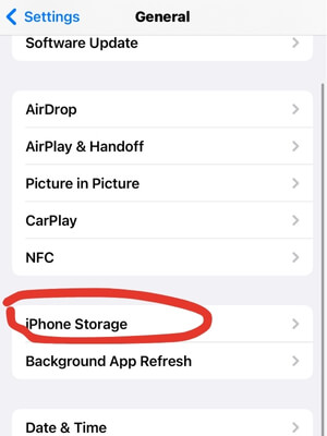 - KlikněteGenerál, přejděte dolů a najděteÚložiště pro iPhone