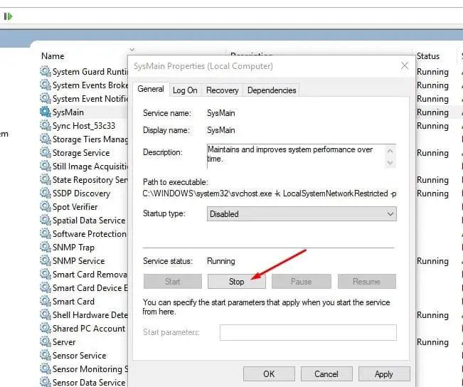- Přejděte dolů a vyhledejte službu s názvemsysmain(dříve známé jako Superfetch)