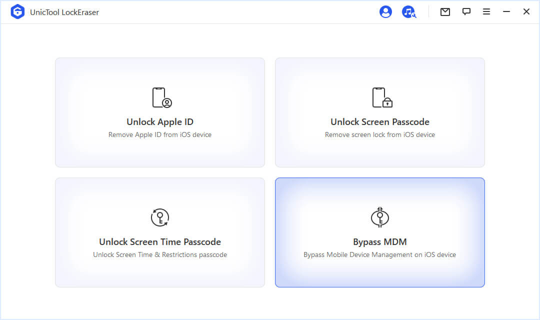UnicTool LockEraser, jak název napovídá, je profesionální nástroj určený k odstranění různých zámků na iOS zařízeních, včetně zámku MDM. Tento program, vybavený všemi potřebnými schopnostmi a pokročilými funkcemi, dokáže během okamžiku dokonale odstranit profil Lightspeed MDM. Kromě toho také umožňuje uživatelům obejít MDM, když jsou přilepeni na zamykací obrazovce MDM.