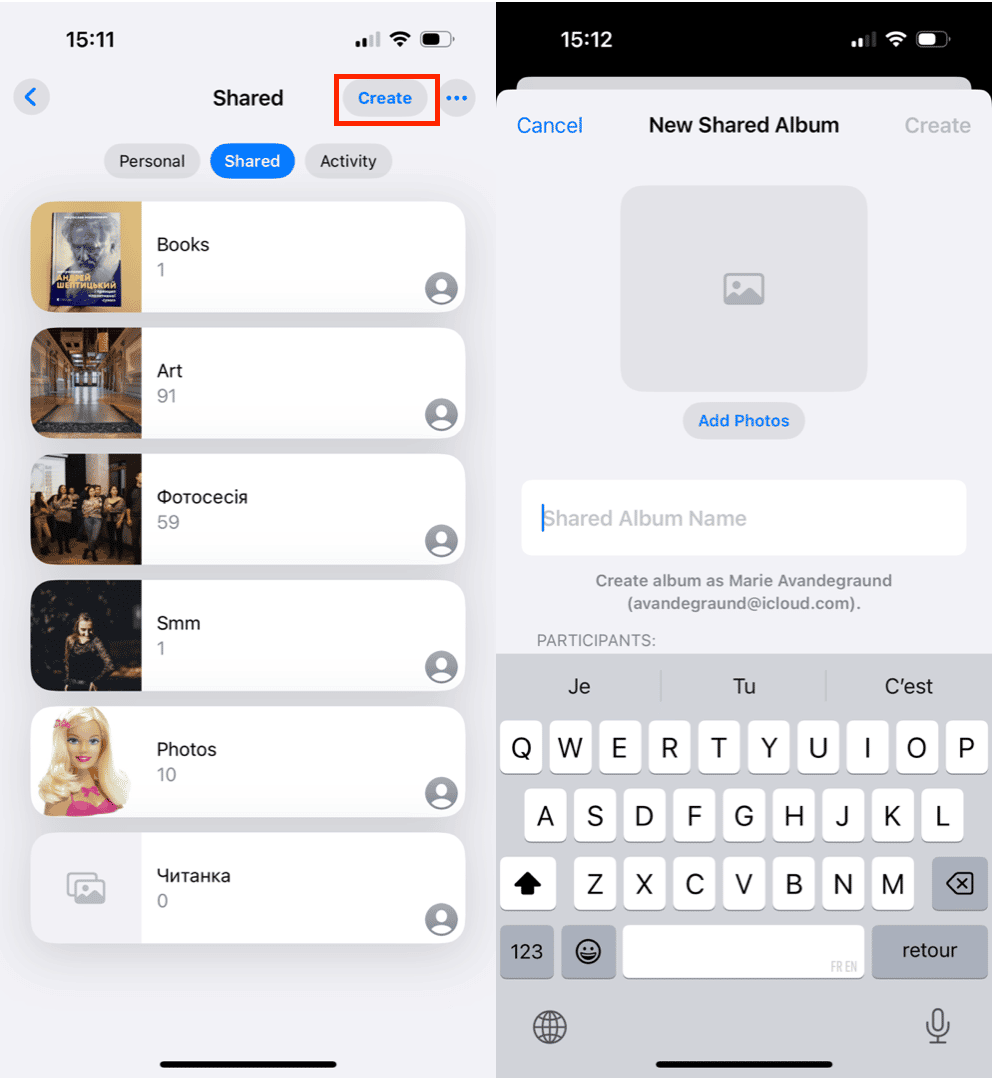- Nyní můžete přidat fotografie do svého sdíleného alba. Vaše kontakty obdrží oznámení, že byly přidány také do sdíleného alba.