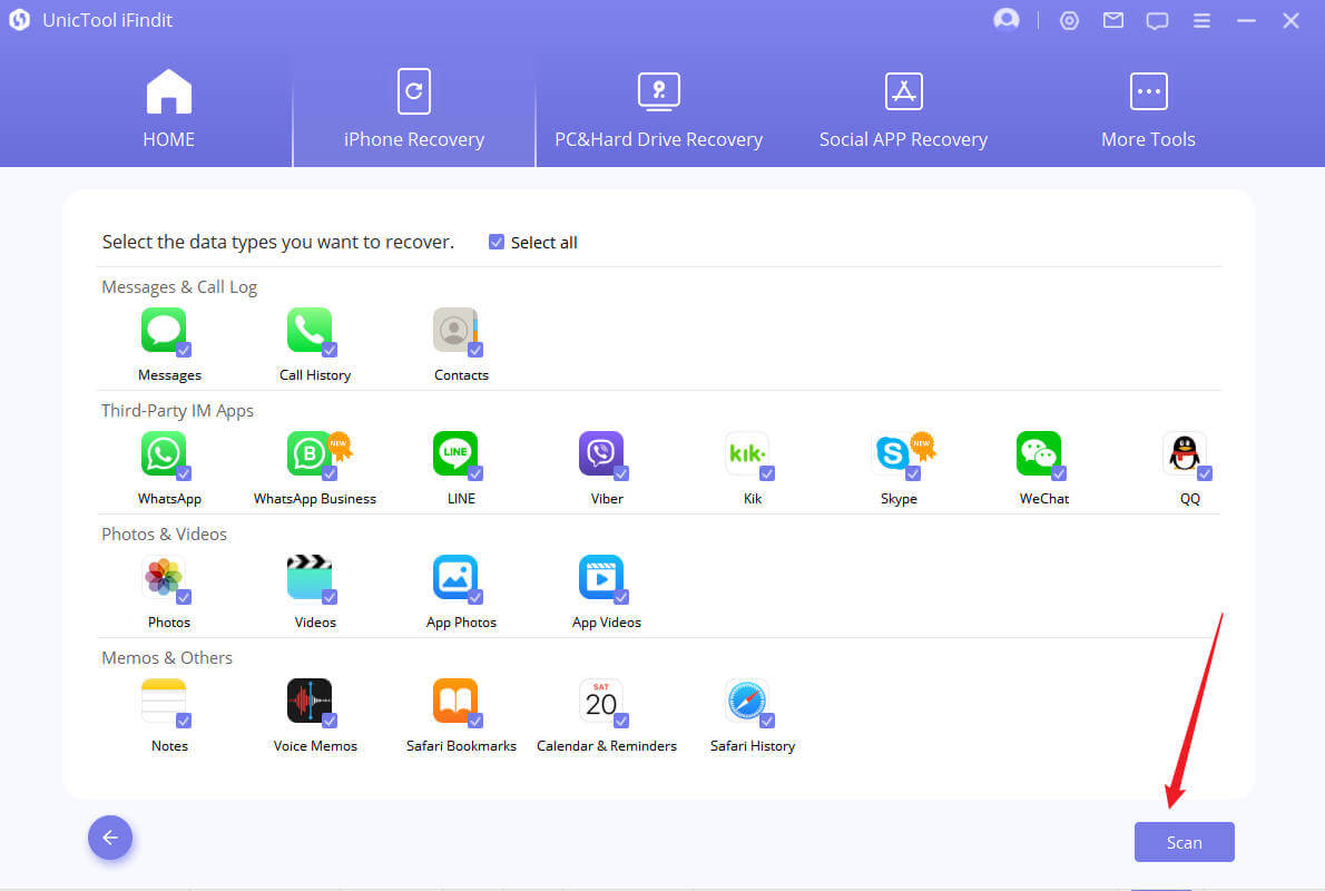 iFindit to specjalistyczne oprogramowanie do odzyskiwania plików dla iPhone'a i komputera, które może łatwo i skutecznie odzyskać wszystkie usunięte lub utracone dane, w tym zdjęcia, filmy, historię czatów WhatsApp, historię wyszukiwania w Safari,historia połączeńi tak dalej, nawet jeśli nie masz kopii zapasowej. Możesz także bezpłatnie skanować i przeglądać dane przed pobraniem. Wykonaj trzy kroki poniżej, aby natychmiast odzyskać utracone dane iPhone'a.