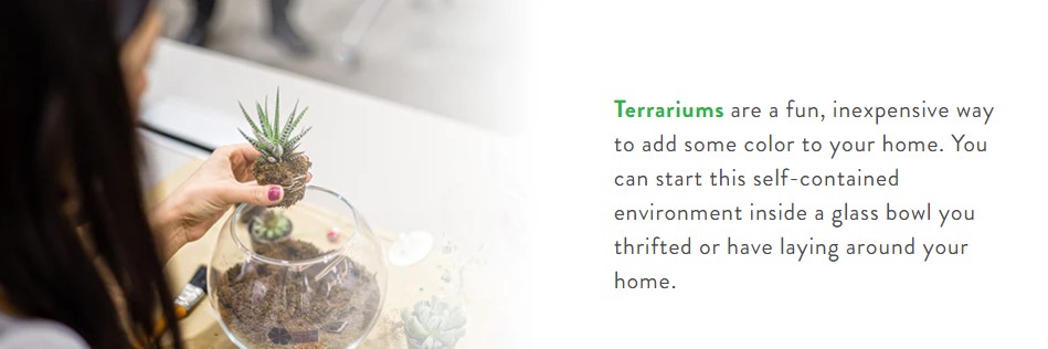 - Uruchom terrarium. Terraria to fajny i niedrogi sposóbdodaj trochę koloru swojemu domowi. Możesz rozpocząć to niezależne środowisko w szklanej misce, którą zaoszczędziłeś lub którą masz w domu. Zacznij od wyłożenia dna kamykami, korą lub muszlami, aby brud miał miejsce do odprowadzenia nadmiaru wody, a następnie użyj lekkiej, przewiewnej gleby. Teraz czas na kreatywność! Do dekoracji użyj dowolnej kombinacji roślin i znalezionych figurek.