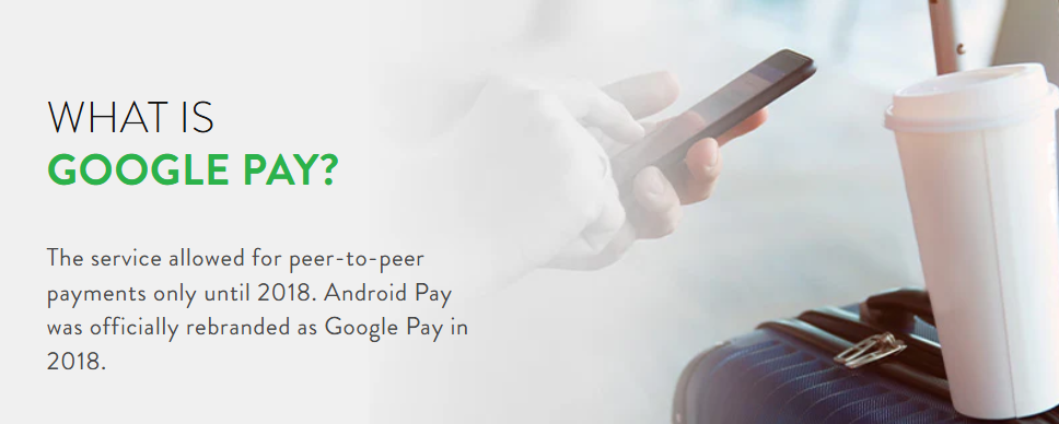 Google Pay to aplikacja do płatności online i portfela cyfrowego, której historia sięga 2011 roku. Pierwotnie nosiła nazwę Google Wallet, ale w 2015 roku zmieniła nazwę na Android Pay. Usługa umożliwiała płatności peer-to-peer tylko do 2018 roku. Android Pay został oficjalnie przemianowany na Google Pay w 2018 roku.