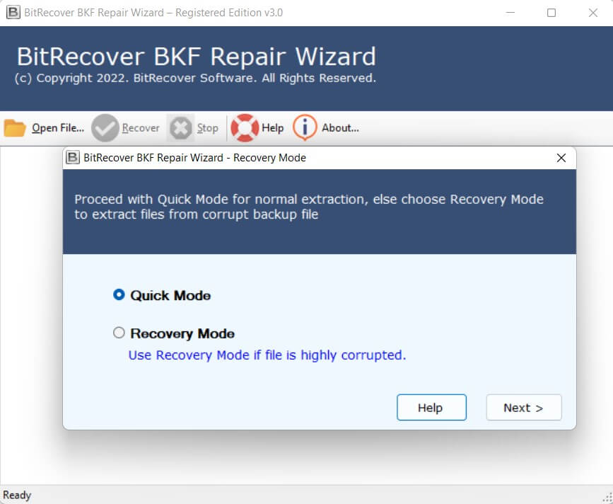 Aby naprawić ten błąd, będziesz musiał skorzystać z pomocy profesjonalnego narzędzia, ponieważ nie możesz naprawić tego błędu za pomocą rozwiązania ręcznego, a nazwa narzędzia, które może naprawić ten błąd toNarzędzie do naprawy BitRecover BKF. To oprogramowanie jest przeznaczone do naprawiania wszelkiego rodzaju błędów w plikach BKF. Za pomocą tego oprogramowania jest to również możliwewyodrębnij dane pliku BKFpo naprawieniu błędu „Plik kopii zapasowej zawiera nierozpoznane dane i nie można go użyć”. Narzędzie to jest bardzo przyjazne dla użytkownika i nawet użytkownik nietechniczny może z niego korzystać z łatwością.