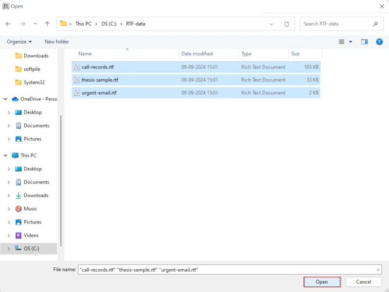 3. Wybierz wszystkie cofnięte pliki z urządzenia. Naciskać "Otwarte”.