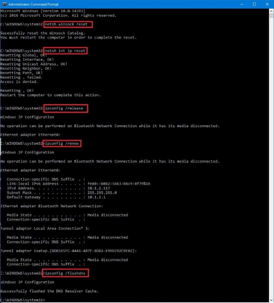 - Netsh int reset ip
