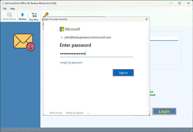 3. Wprowadź adres e-mail i hasło Office 365 w wymaganym polu tekstowym.