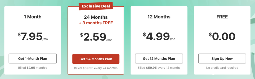 Wreszcie, 24 miesiące kosztują 2,59 USD miesięcznie lub łącznie 69,95 USD co dwa lata, a dodatkowe dwa miesiące są wliczone bezpłatnie.