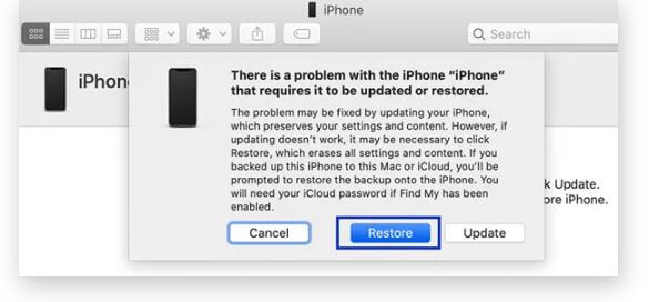- Krok 3: Po wyświetleniu monitu o przywrócenie lub aktualizację wybierz opcję Przywróć. Aby zakończyć przywracanie, postępuj zgodnie z instrukcjami wyświetlanymi na ekranie. Następnie będziesz mógł odblokować iPhone'a bez hasła.