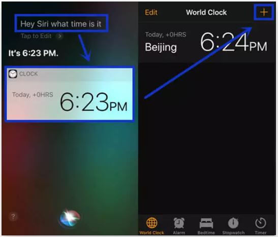 - Krok 1: Powiedz: „Hej Siri, która jest godzina?” trzymając i naciskając przycisk Home. Następnie Siri wyświetli zegar.