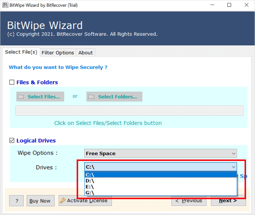 • To narzędzie obsługuje opcję czyszczenia całego dysku lub wybranego folderu lub partycji.