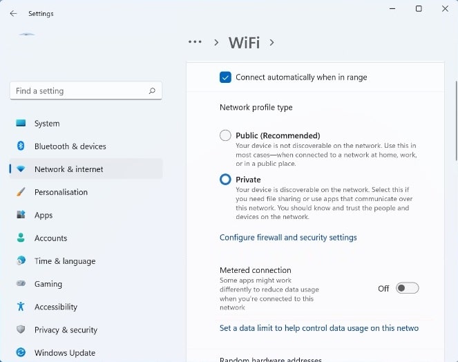 - Wybierz Wi-Fi > Właściwości połączenia Wi-Fi