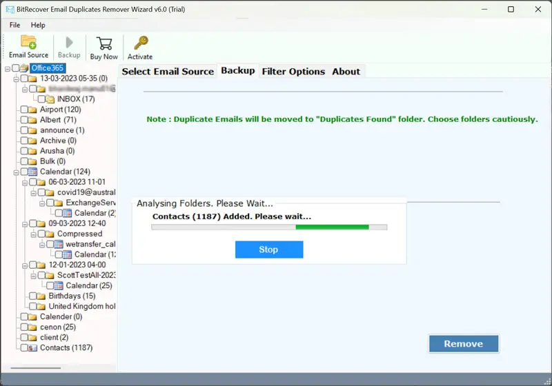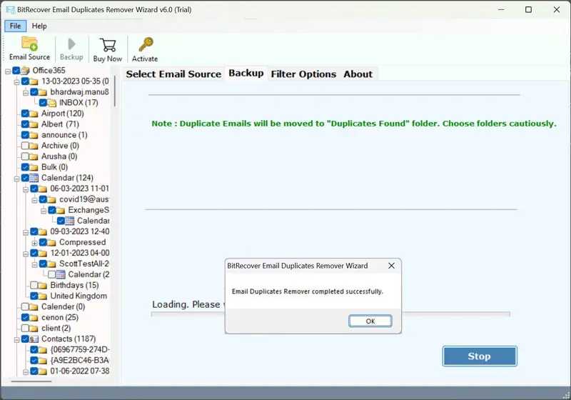 - Narzędzie zostanie uruchomioneusuwanie duplikatów e-mailiz konta współdzielonej skrzynki pocztowej.