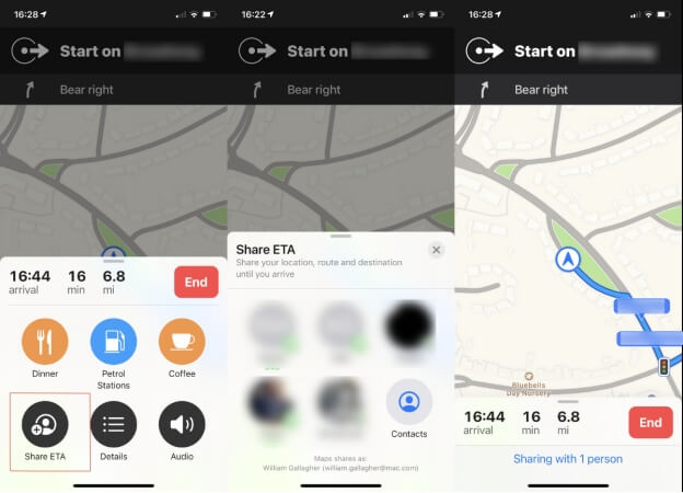 2. Udostępnij lokalizację na iPhonie w drodze do celu
