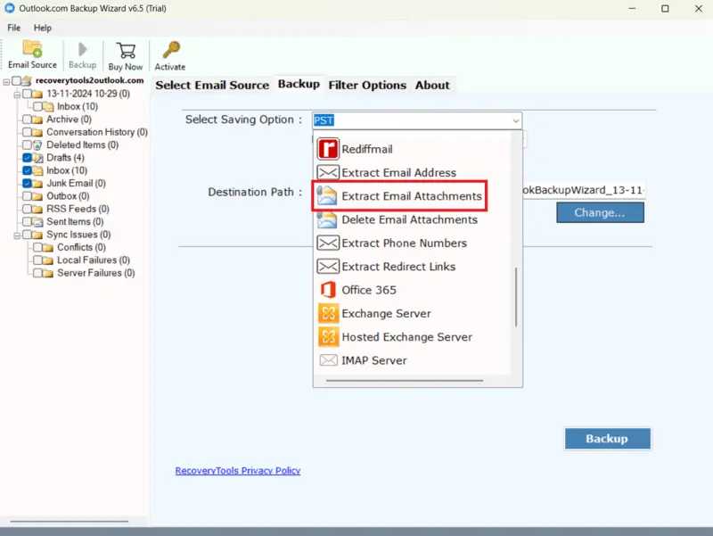 W przypadku bezproblemowego i wydajnego procesu zapoznamy się z solidnym rozwiązaniem, które pomoże Ci wyodrębnić lub usunąć załączniki e -mail bez utraty danych i z pełną dokładnością. Narzędzie,BitRoCover Outlook.com Backup Wizardto samodzielne oprogramowanie do tworzenia kopii zapasowych e -maili Hotmaila bez wysiłku. Obsługuje prosty w użyciu i przyjazny dla użytkownika interfejs, który sprawia, że to narzędzie jest dostępne i akceptowalne przez wszystkich użytkowników, zarówno technicznych, jak i nietechnicznych. Ponadto jego zaawansowane funkcje i kompatybilność zapewniają sprawne zakończenie procesu przy zachowaniu wszystkich elementów. Narzędzie oferuje również bezpłatną wersję demonstracyjną do testowania działań i funkcji przed zakupem edycji licencji. Więc pobierz narzędzie teraz i ciesz się procesem bezproblemowym.