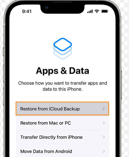 - Krok 2:Spośród wszystkich pozostałych opcji wybierz opcję „Przywróć z kopii zapasowej iCloud”.