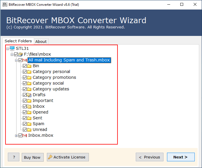 - Wstaw plik MBOX za pomocąWybierz plikpudełko>Następny.