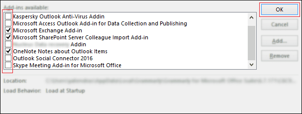 4. Wybierz Dodatki i Zarządzaj COM:Dodatki i usuń zaznaczenie Wszystkie.