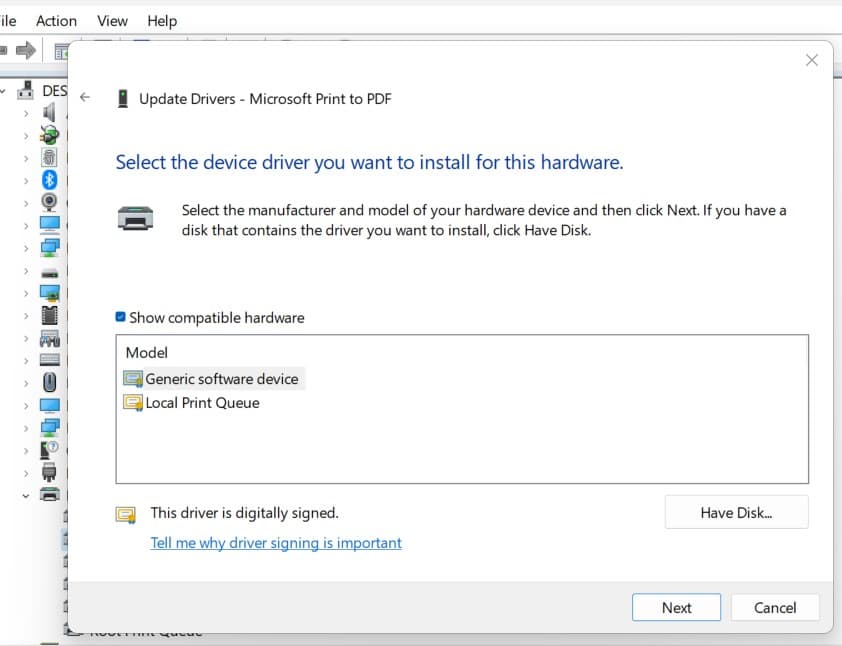 Jak wspomniano wcześniej, jeśli na komputerze jest zainstalowany starszy sterownik drukarki, może to być główną przyczynąbłąd sterownika drukarki jest niedostępnywiadomość na komputerze z systemem Windows 11.