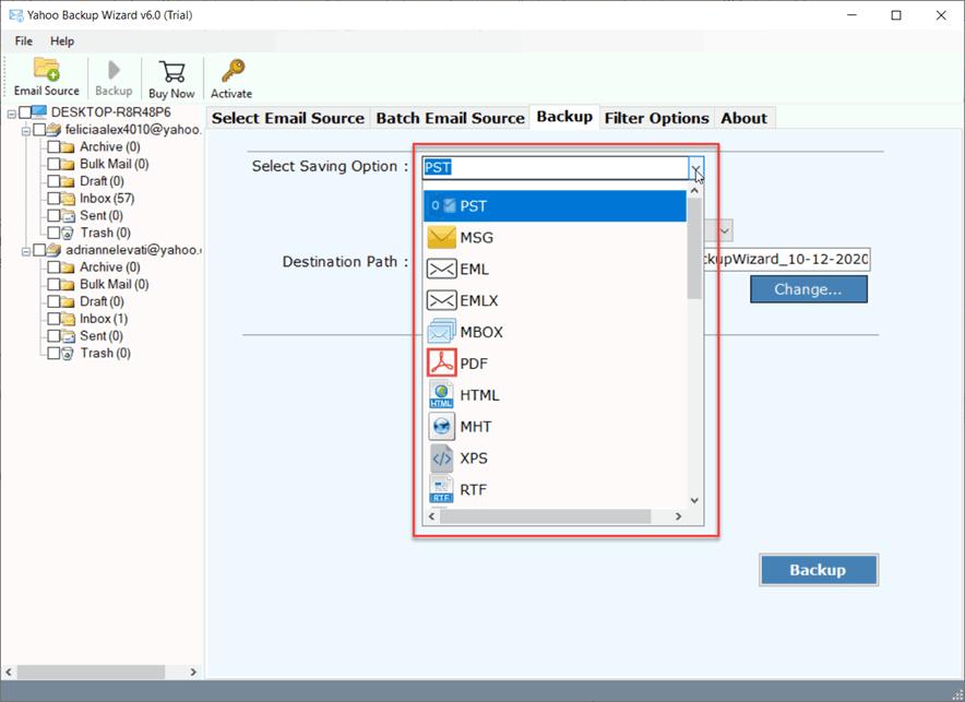 - Eksportuj dane poczty Yahoo do formatów plików, takich jak PST, PDF, MBOX, EML, MSG i HTML.