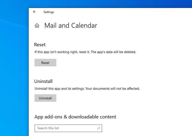 - OtwórzSklep Microsoftu, szukajPoczta i kalendarzi zainstaluj ponownie aplikację.