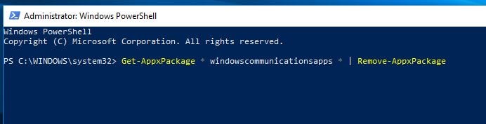 Get-AppxPackage Microsoft.WindowsCommunicationsApps | Usuń AppxPackage