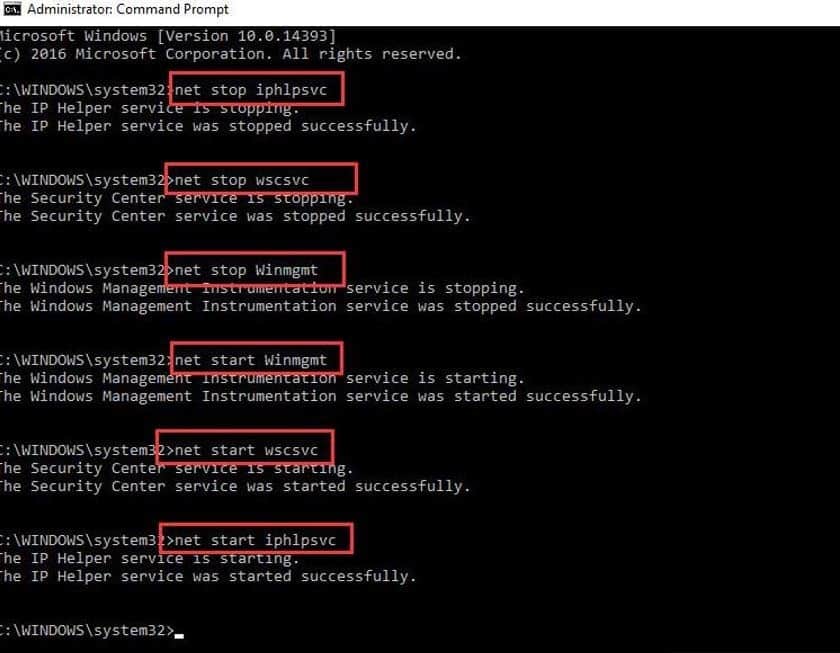 Teraz otwórz wiersz poleceń jako administrator i wykonaj poniższe polecenie. Po zakończeniu uruchom ponownie komputer i sprawdź, czy nie ma już więcejWysoki procesor hosta dostawcy WMIproblem na Twoim komputerze.