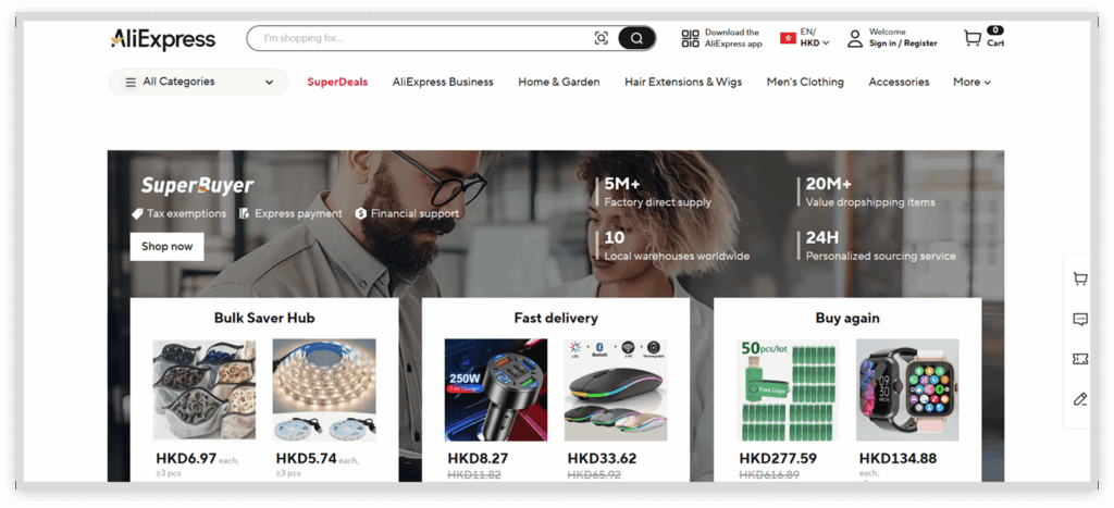 Oferujeobszerna lista produktów, w tym artykuły gospodarstwa domowego, moda, elektronika, meble i nie tylko. Ponadto możesz zarejestrować się jako sprzedawca i sprzedawać produkty. AliExpressdziała dokładnie tak samo jak inne platformy e-commerce, umożliwiając użytkownikom wyszukiwanie produktów, czytanie recenzji i kupowanie produktów bezpośrednio od sprzedawców.