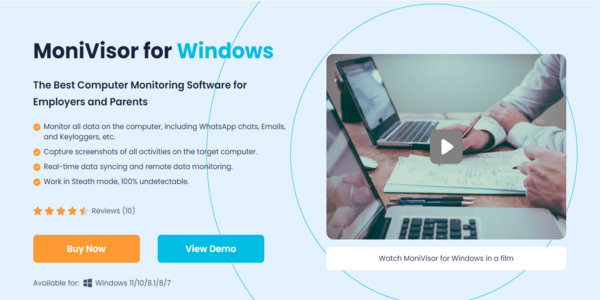 - MoniVisor: Śledzi wszystkie dane komputera, w tym keyloggery, czaty WhatsApp i e-maile. Dodatkowo zapewnia synchronizację danych w czasie rzeczywistym, zdalne monitorowanie danych oraz zrzuty ekranu każdej akcji prowadzonej na urządzeniu docelowym.
